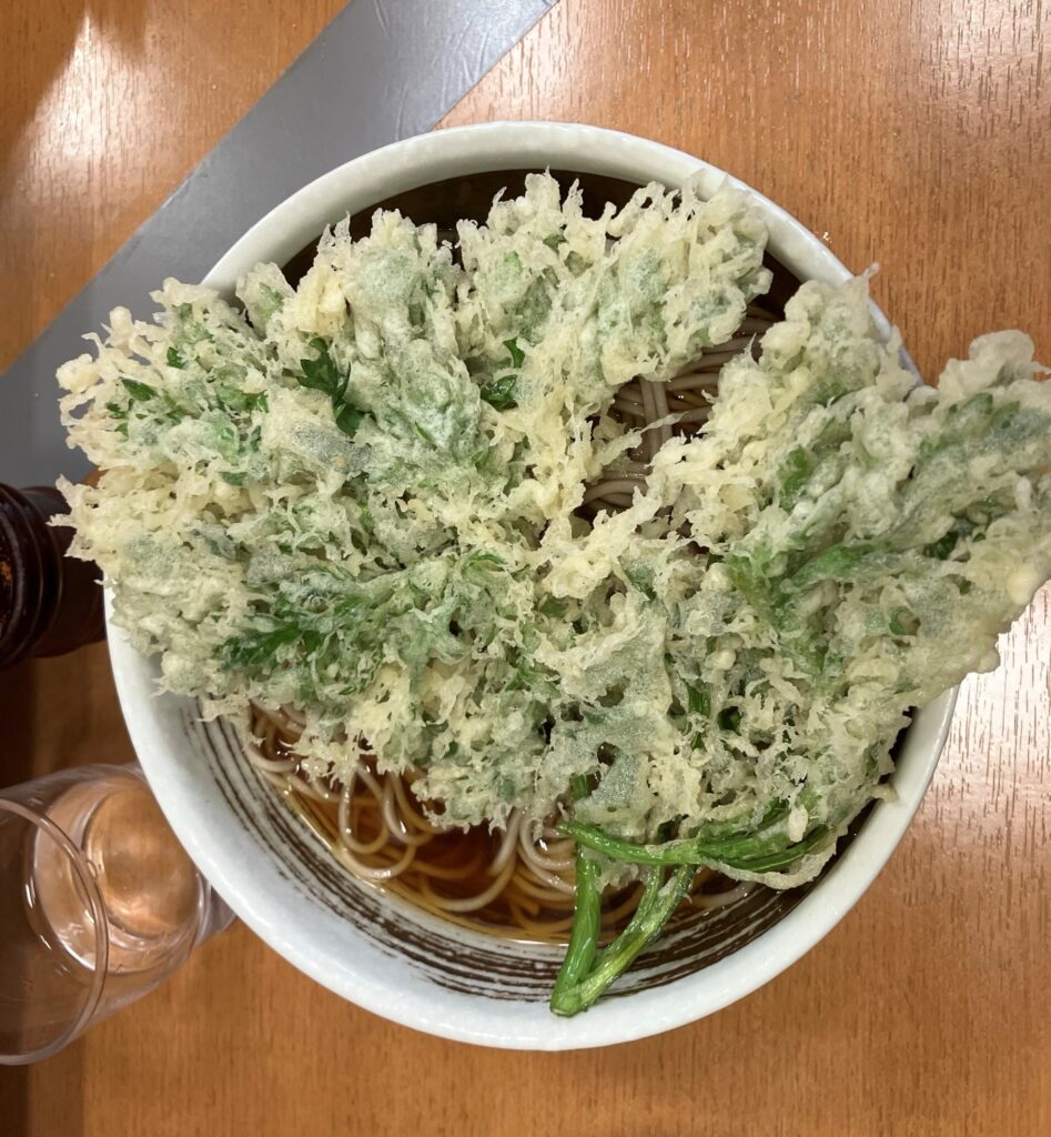 春菊の天ぷらがかなり大きくておいしかったです♪